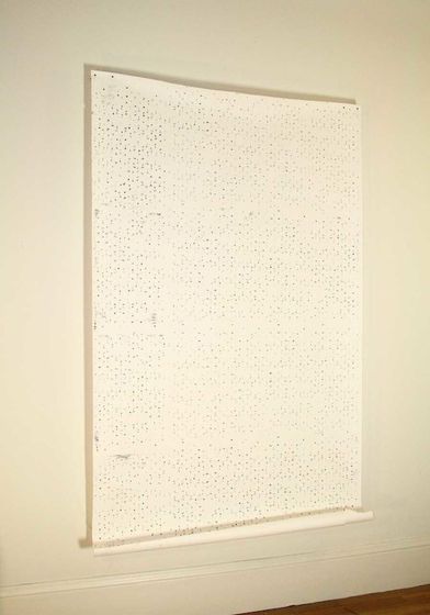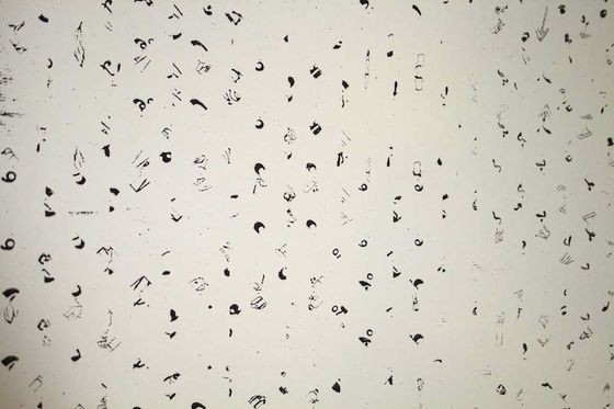 Hand pulled print of a pattern with a 18" x 24" wood block. The wood block is used to print 56 3-inch squares of paper. Every 6 sheets can be assembled as an origami cube with a letter, and its corresponding image, coming together on the faces of the cube.
